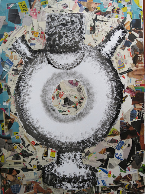 TÉCNICA- Colagem e impressão de tinta acrílica sobre tela..